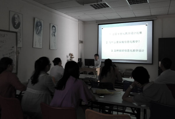 9月16日上午,教务处周源老师为心理健康教育中心的专兼职老师进行了“信息化教学设计”的培训。周老师结合大量优秀的信息化教学设计比赛作品,就如何做好信息化教学设计进行了直观形象、深入浅出的讲解,让在座的老师深受启发。