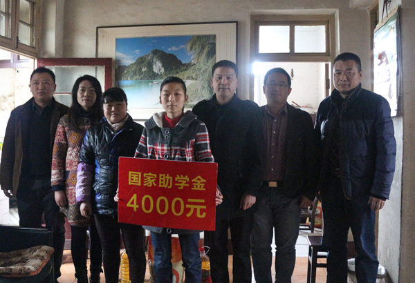 为了深入贯彻党的“三严三实”专题教育活动精神,推进精准扶贫,加大帮扶力度,使国家资助政策这项民生工程惠及家庭经济困难学生,12月5日上午,校学工处处长熊楚舒、校团委书记杨勇、学工处学生教育科副科长吴冬,建筑学院党总支副书记刘国峰、团总支副书记田涛,辅导员林迁、陈继乾、胡丹梅、周宜松一行八人,先是来到浠水县清泉镇三台山村,对钢构201502班的贫困学生吴国双的家庭进行了走访和慰问,给他的家庭送去了学校的关爱和问候。