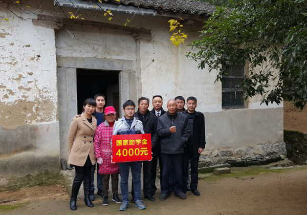 2015年12月6日,校团委书记杨勇、医药卫生学院党委副书记徐火军及相关工作人员到罗田县骆驼坳镇城门山村2组,为医检201503班徐能同学送去了4000元的国家助学金和油、米等生活用品。