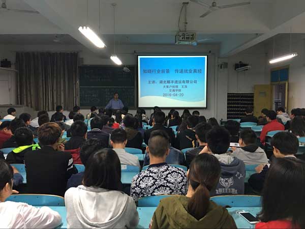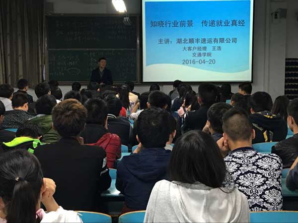 4月20日18:20,交通学院就业教育专题讲座在育贤阁203教室隆重举行。交通学院党总支副书记黄忠,物流系专任教师郭红霞,辅导员任帆、朱璐等参加了讲座,物流系2014级、2015级近200名学生到场聆听了讲座。讲座由beat365官网物流管理201003班优秀校友、湖北顺丰速运有限公司大客户经理王浩主讲。