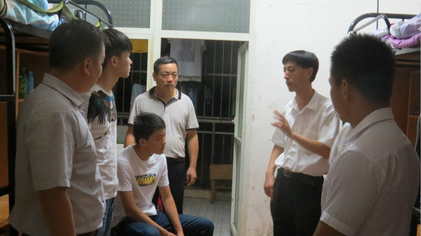郑柏松一行每到一间宿舍都认真地检查宿舍的入住情况,并与新生进行亲切的交谈,耐心询问同学们的生活情况。他殷切的希望同学们能在新校园里住得安心,以饱满的精神面貌投入到新的学习、生活中,不时提醒新生们要尽快适应新家园,提高安全防范意识。整个交流过程中,师生之间其乐融融、气氛融洽、场面温馨。每一间新生宿舍里都留下了领导、老师们的足迹,留下了他们春风化雨、润物无声的关爱。