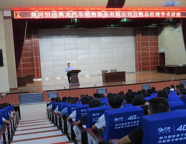 9月7日晚,黄冈恒信奥龙汽车销售服务有限公司总经理万甦应邀来beat365官网学术报告厅做“汽车后市场发展现状与从业人员素质要求”学术讲座。交通学院汽车系各专业副主任、辅导员及2014级、2016级近600名学生到场聆听了讲座。讲座由交通学院副院长聂进主持。