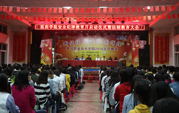 9月30日晚, 医药学院在大学生活动中心召开了安全法制教育月启动仪式暨法制教育大会。黄冈市黄州区公安局法制科陈世波警官,黄冈职院学工处副处长陈胜红老师,医药学院负责学管工作领导欧阳风雷、团总支负责人曹俊峰和全体专、兼职辅导员到会。医药学院2016级全体中职学生、各班班长、团支书、学生会团总支干部近1000名同学参加了启动仪式。会议由曹俊峰主持。