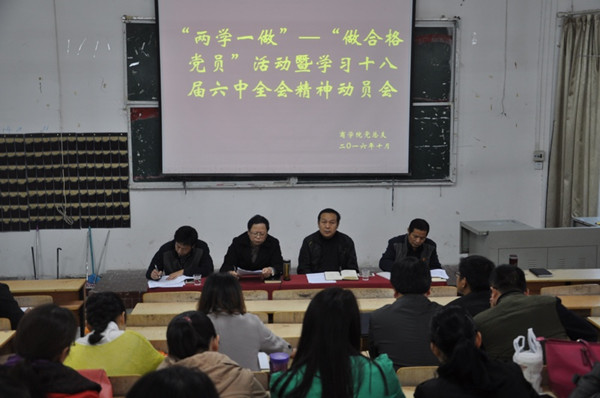 10月28日下午,商学院“做合格党员”实践活动暨学习十八届六中全会精神动员会在群贤阁309教室召开,商学院院长周常青主持会议,商学院全体教职工参加动员会。