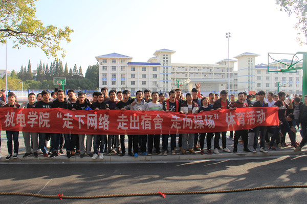 为积极响应团省委、校团委号召,机电学院在全体青年学生中开展了系列“走下网络,走出宿舍,走向操场”户外体育锻炼活动,以有效载体切实引导和带动全院学生参与体育锻炼,强健身体素质,磨练意志品行、培养良好品德,从而营造积极拼搏、团结向上的校园文化氛围。