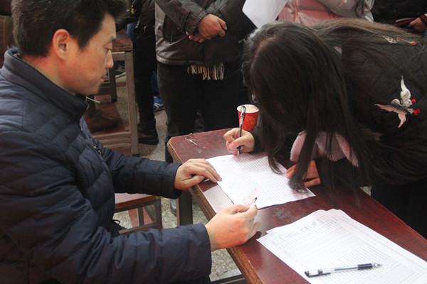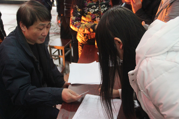 黄冈市财政局教科文科副科长程晓明现场核实学生身份