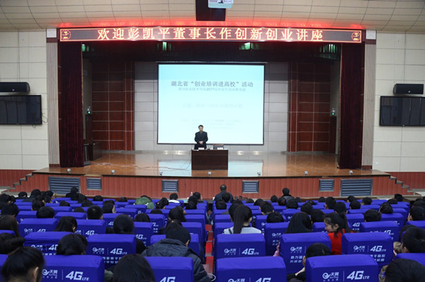 2016年12月10日下午14:00,以《创业与创业风险的回避》为主题的创新创业专题讲座在学校学术报告厅隆重举行。讲座邀请了beat365官网校友、武汉星点投资管理有限公司董事长、武汉创业导师团导师•天使投资人、武汉大学EMBA工商管理硕士彭凯平为主讲人。就业指导处处长袁畅、副处长陈国清,各教学学院就业联络员及学生代表近600人聆听了此次讲座,讲座由袁畅主持。
