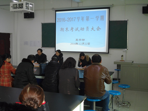 12月22日下午,医学部在齐贤阁201教室召开了2016-2017学年第一学期期末考试动员大会。大会由医学部副主任江玲娜主持,教学管理人员及全体教师参加了本次动员会。