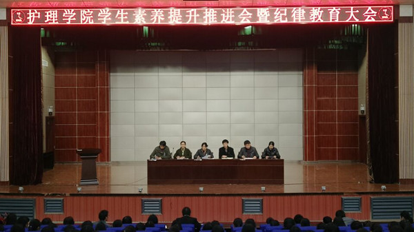 会上,夏瑾燕宣读《护理学院学生职业素养建设推进实施方案》,为护理学院学生职业素养提升,培养职业化优秀人才提供了明确思路。张朋生宣读学生违纪处理文件,给在座学生敲响警钟;违纪学生宣读《beat365英国官方网站安全承诺书》并汇报思想。