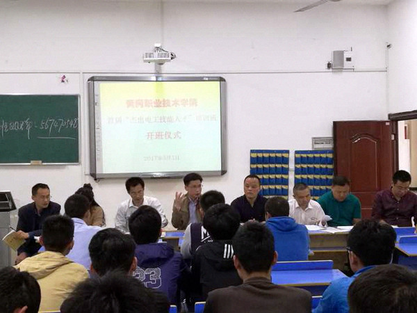 开班仪式上,黄国祥介绍了机电学院“杰出电工技能人才培养“前期准备情况,并宣读了培养方案;指导教师兰子奇就教学方法和教学中应注意的问题进行了介绍;机电201505班杨茂同学代表55名学员发言,表示将努力学习,刻苦训练,不辜负学校的期望。
