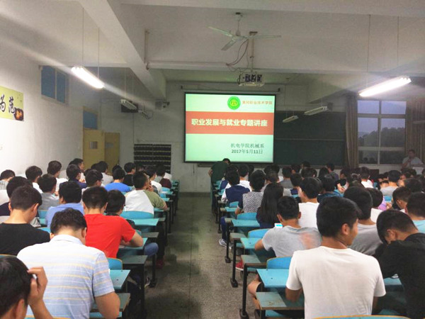 2017年5月11日晚上,机电学院邀请蓝欧科技(武汉)有限公司院校合作总监陈新云,为全体机械系15级、16级学生,开展了一场职业发展与就业专题讲座,机械系主任曹明顺、骨干教师陆龙福,辅导员徐小梅、肇芬等参加了讲座,活动由工业设计专业主任王治雄主持。