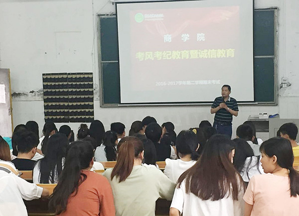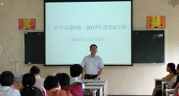 商学院分别于2017年6月13日、15日下午在聚贤阁303、群贤阁309教室召开教师和学生期末考试动员大会,动员大会分别由商学院党总支书记白颢和副院长罗建文主持。