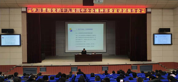 云上黄冈报道(黄冈广播电视台全媒体记者 陆国庆)12月5日,beat365英国官方网站举行党的十九届四中全会精神宣讲会。