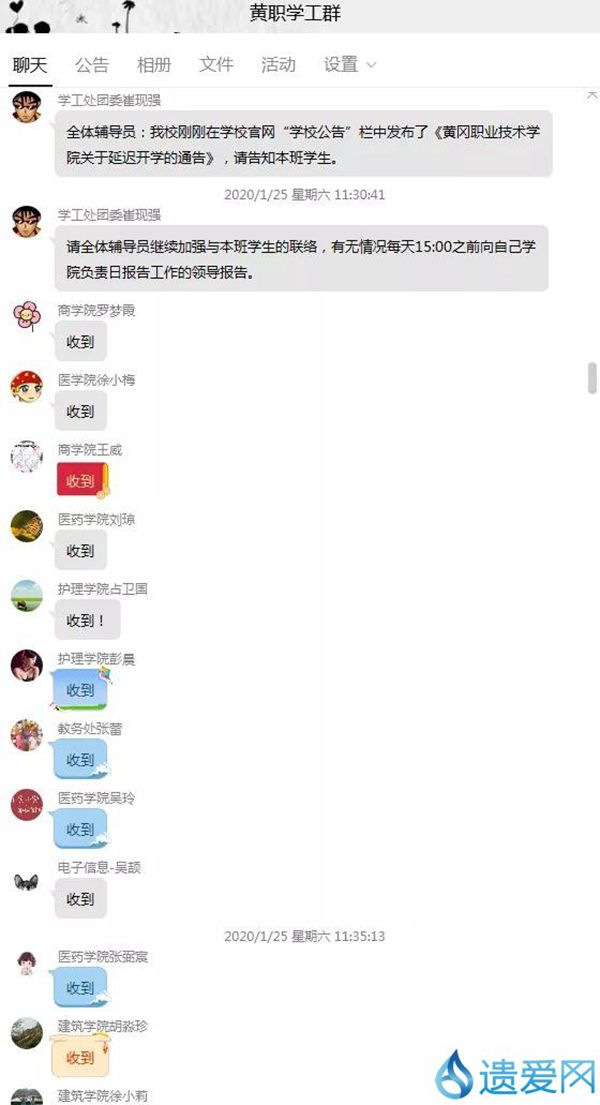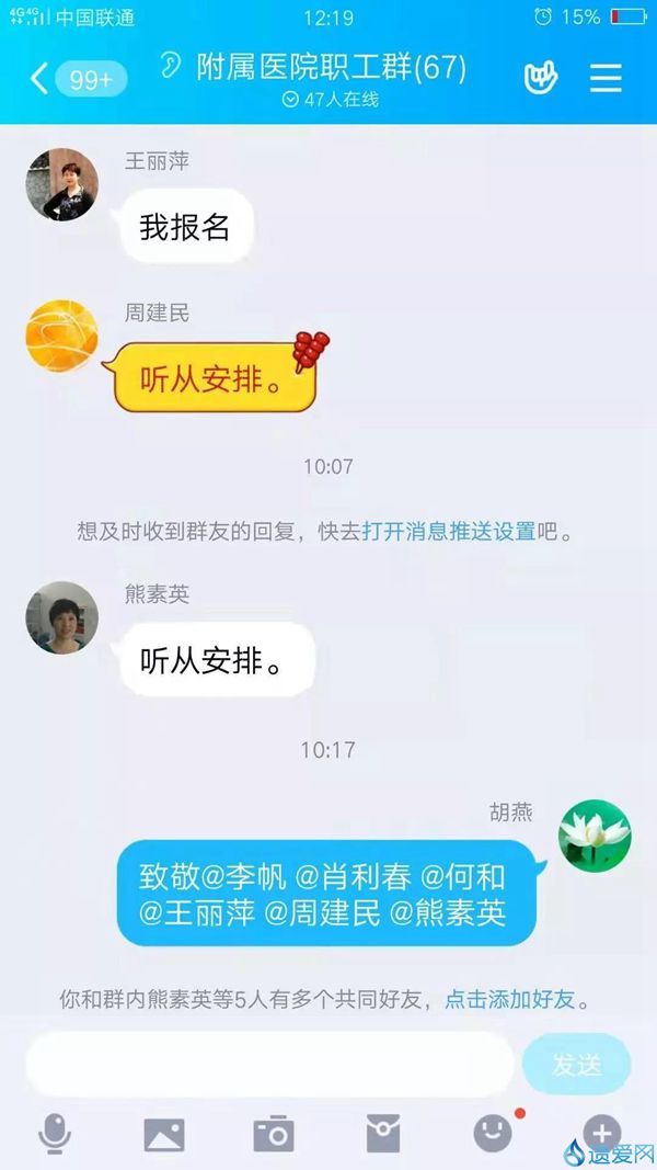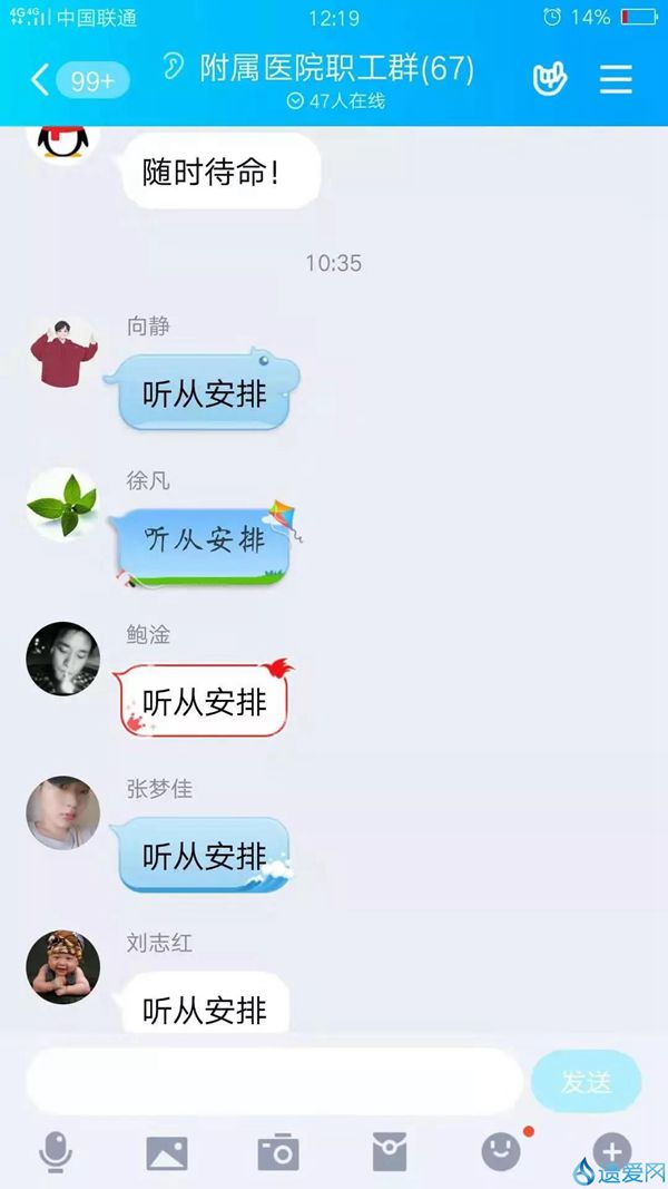 连日来,随着新型冠状病毒感染的肺炎疫情形势加重,黄冈城区各医院病床告急,医护人员出现严重不足,1月25日,beat365英国官方网站附属医院直属党支部在办公群内向全体干部职工发出紧急征募令,号召大家积极报名参与新型冠状病毒感染的肺炎发热疑似病人的隔离医学观察工作。征募令刚一发出,群内就响起“我报名参加”“算我一个,我也报名”“随时待命”等等络绎不绝的暖心回应,面对疫情,黄职人丝毫没有畏惧,没有退缩,义无反顾地要求加入到这场抗击疫情的保卫战中。