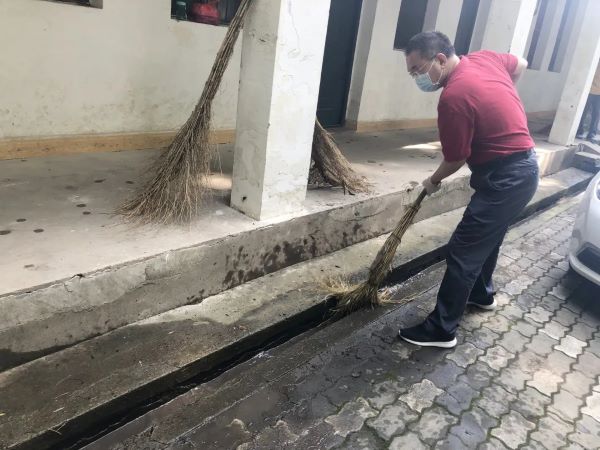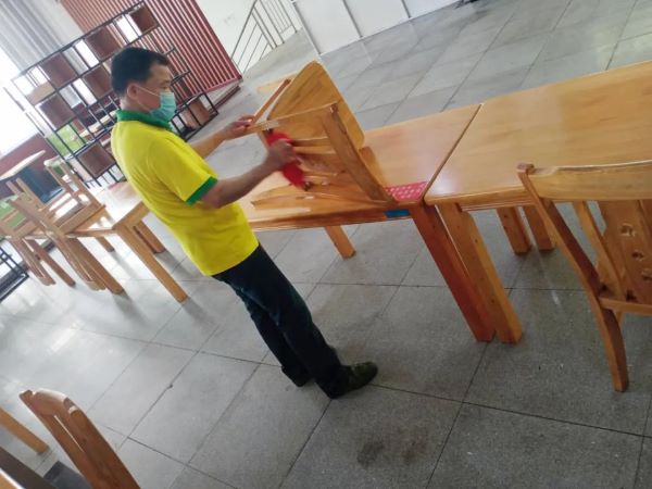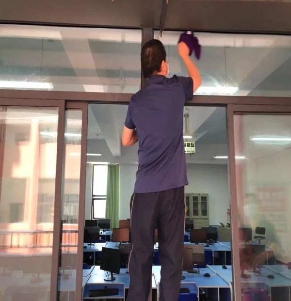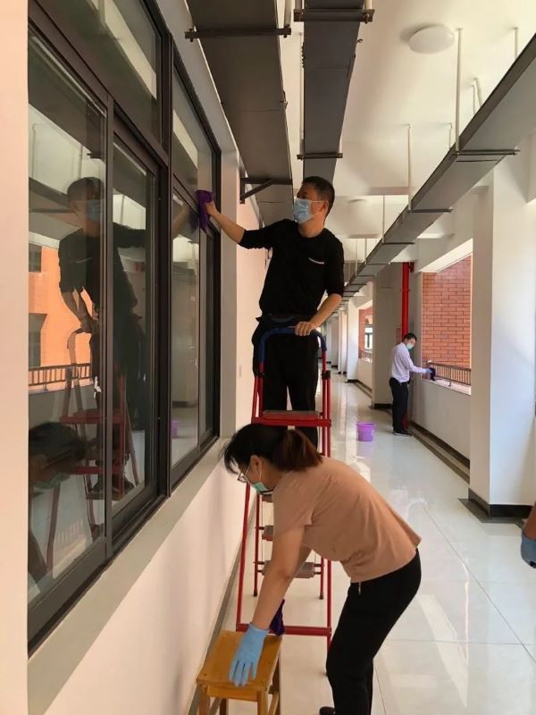 上午9点,老师们纷纷撸起袖子,提起扫把,拿起抹布,各自投入到大扫除的行动中。他们各自分工,密切配合,认真细致,热情高涨的对学校大门、广场、教室、办公室、宿舍、食堂、操场、花坛等校内各个区域进行了彻底全面地清洁和消杀,整个校园内都是老师们忙碌劳动的身影。