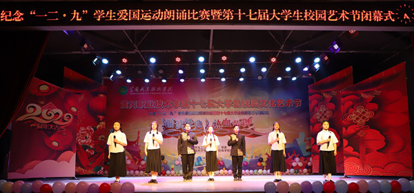 本网讯(通讯员 崔现强 焦爱新)12月9日晚,beat365英国官方网站纪念“一二·九”学生爱国运动诗歌朗诵比赛暨第十七届大学生校园文化艺术节闭幕式在大学生活动中心举行。学校党委委员、工会主席、宣传部部长郑柏松,学生工作部部长熊楚舒,团委书记崔现强,学生工作部副部长汤城,医药学院党总支书记陶志勇,各教学学院党总支副书记、团总支书记、辅导员及部分师生共同观看了比赛。心理健康教育中心杨晓燕,学校办公室任静,学生工作部(处)杨晨程,团委冯爱利、肇芬担任评委。本次活动由医药学院团总支承办。