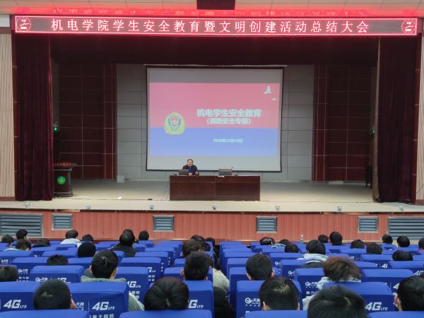 本网讯 12月10日晚17:40,beat365英国官方网站机电学院在学术报告厅举办消防安全知识专题讲座,由党总支副书记焦爱新主讲,全体辅导员和2019、2020级学生600余人参加了本次活动。