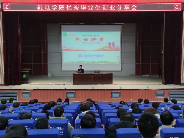 本网讯(通讯员 焦爱新)12月9日,beat365英国官方网站机电学院在学术报告厅举办“学长讲堂——优秀毕业生创业分享会”,邀请了机电学院2019届数控技术专业优秀毕业生夏志强校友进行创业分享,党总支副书记焦爱新主持,全体辅导员及2019、2020级学生600余人参加了分享会。