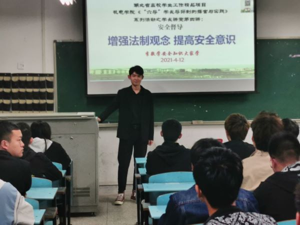 本次讲堂活动的开展,是机电学院落实“4 .15”国家安全教育日宣传教育活动的具体措施,也是湖北省高校学生工作精品项目“‘六导’学长导师制”系列活动之学长讲堂——第四导“安全督导”篇的重要环节之一。