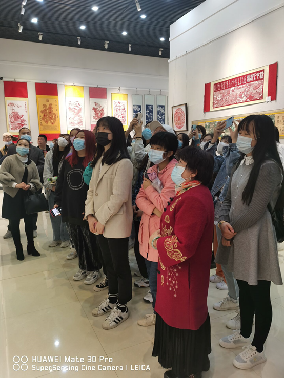 卢华大师亲切地接待了我们参观的师生,给我们讲解每副作品背后的故事和蕴含的深意,有历时八个月打造的古典题材《清明上河图》,有疫情期间历时十个月制作的展现社会主义幸福中国题材的《遗爱湖十二景》等等,展出的作品内容丰富、构图巧妙,既吸收了传统文化营养,又融入了民间剪纸的表现手法。引得同学们不时发出阵阵惊呼,纷纷拍照留念。