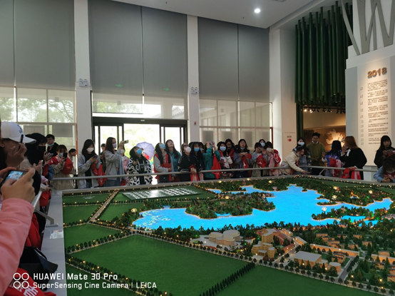 参观完剪纸作品展后,我们又驱车来到黄冈市遗爱湖建设馆参观,并进行青年志愿者活动,遗爱湖建设馆展示了遗爱湖改造前后黄州发生的翻天覆地的变化,对照这十几年间的变化,同学们更是感叹我们要好好学习,从前辈手中接过接力棒,为把我们的祖国、我们的家园建设得更加美丽做出自己的贡献。