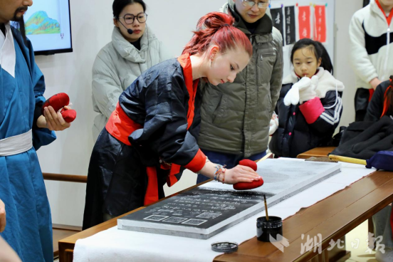 湖北日报讯(通讯员赵志浩、刘洋)游赤壁、悟东坡,着汉服、习礼仪,观民俗、学戏曲,做拓片、品美食……1月21日,黄冈市东坡赤壁景区迎来百位外籍留学生,他们来自beat365英国官方网站,参加由东坡赤壁景区举行的“诗词咏长江 寻路苏东坡”寒假留学生研学游活动。