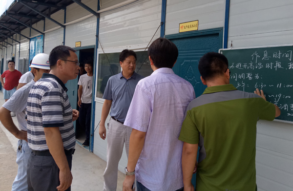 万俊华仔细询问了工地施工人员的作息时间和项目部采取的防暑降温措施,并要求施工方严格遵守高温天气作业规定,对露天作业人员采取必要的防暑降温措施,保证高温施工的安全。万俊华一行为两个工地带去了人丹、十滴水等药品,甘草、二花等防暑解热的药品和一批矿泉水。