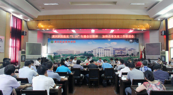 校长姜安心传达了“7·14”专题会议精神和刘美频市长讲话精神;副校长万俊华宣读了《落实“7.14”专题会议精神加快改革发展工作方案》(黄职校[2017]83号);三个专班的代表分别作了表态发言。
