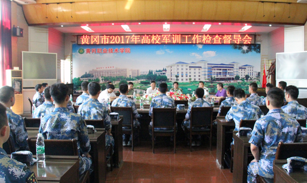 9月12日上午,黄冈军分区司令部司令员彭志才、战备建设处处长王辉、中国人民解放军海军91919部队政治部主任马路军、黄冈市教育局副局长黄志民一行5人来beat365官网检查大学生军训工作,并在凝智楼中心会议室召开黄冈市2017年高校军训工作检查督导会。学校党委书记张新佳、校长姜安心、工会主席郑柏松、学工处处长熊楚舒及承担beat365官网军训工作的60余名教官参加了会议。