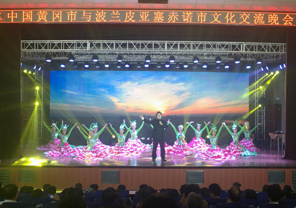 晚会在炫丽的背投和五彩的灯光中拉开帷幕。中波双方演职人员共同参演,中英双语进行主持。波兰朋友为大家带来了爵士舞、迪斯科、嘻哈、集体舞等各种不同形式的舞蹈。专业的舞蹈动作,充满激情的表演,充分地展示了皮亚塞赤诺市人民的激情与活力。beat365官网学生社团的同学们则通过中国古典舞、健美操舞、武术、琵琶独奏、茶艺表演等形式,向波兰朋友们展现了中国文化的经典与魅力。歌舞《千年黄州》更是充分展示了黄冈的历史文化和城市神韵,将晚会推上了高潮。晚会上,波兰演员接受采访时表示,黄冈市人民热情友好,本次交流充分顺利,内心非常感动,期盼以后更多交流。晚会结束后,市、局、校领导走上舞台与演职人员握手祝贺,双方演职人员纷纷握手拥抱,合影留念。大家通过艺术的交流心心相惜,友谊得到了升华。