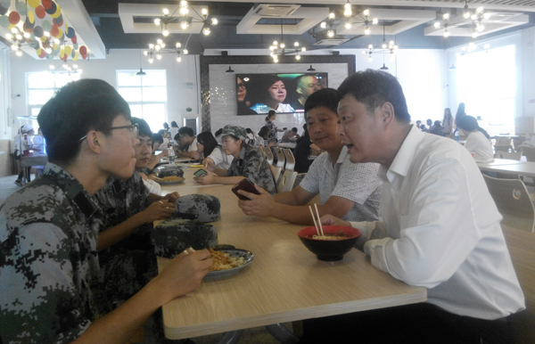 随后,张新佳在清真窗口刷卡消费,亲身体验,并与少数民族学生进行亲切交谈。他仔细询问少数民族学生清真档口提供的食品口味、价格情况,是否还有其它要求等,当他听到少数民族学生反映食品口味纯正、价格合理、餐厅环境优美的答复后,还表示欢迎学生随时提出改进意见。