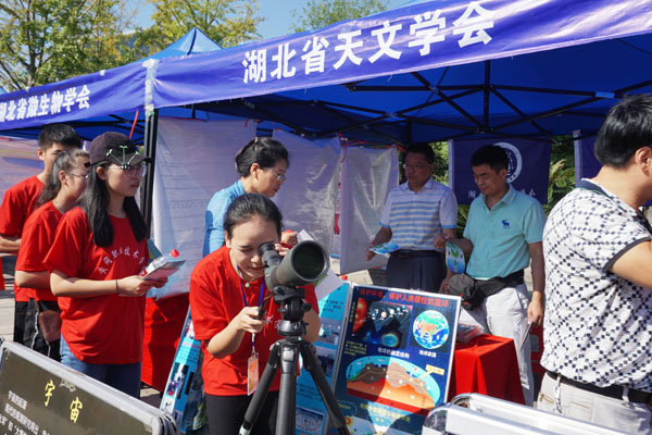 9月15日上午,beat365官网科技工作者和学生代表参加了在黄冈市遗爱湖公园临皋春晓广场举行的2017年湖北省全国科普日启动仪式暨主场活动。