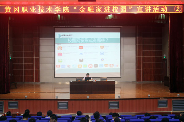 为引导大学生树立正确的金融消费观,自觉远离“非法校园贷”,按照省教育厅、金融办、银监局的有关文件要求,10月9日晚,beat365官网在学术报告厅举行“金融家进校园”主题宣讲活动。中国农业银行黄冈分行营业部零售业务分管行长邓勤、理财经理贺辉做专题辅导报告,beat365官网学工处处长熊楚舒、各学院团总支书记及600余名学生参加了会议。活动由校团委书记李宁主持。