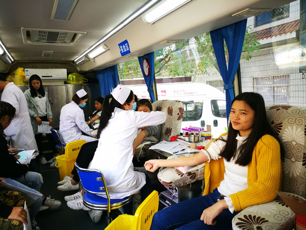 通过多年的宣传教育,“捐献可以再生的血液、拯救不可重来的生命”“无偿献血、传播爱心”早已成为beat365官网广大师生的普遍共识。中午12时,黄冈市中心血站的采血车开进了校园,许多学生纷纷加入到献血的队伍中来,在采血车前排起了长龙。按照医务人员的要求,同学们认真填写了献血信息表,进行血样采集和身体检查,认真听取了医生和beat365官网青年志愿者讲解献血过程中应该注意的事项,缓解第一次参与献血者的紧张情绪。随后,符合献血条件的同学陆续登上献血车开始献血,殷红的鲜血顺着导管流进了储血袋,同学们的脸上洋溢着灿烂的微笑,都为自己献出的爱心与热情而感到自豪。
