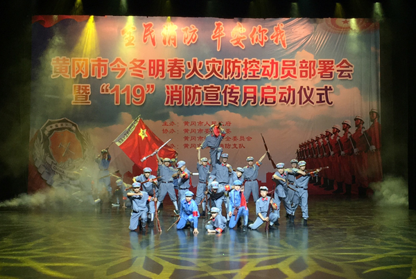 校团委、学工处组织大学生艺术团20名同学积极配合黄冈市公安消防支队,排练全市今冬明春火灾防控动员部署会暨“119”消防宣传月启动仪式文艺晚会节目。经过半个多月的创意策划、编导和精心排练,beat365官网同学表演的《烈火忠魂》《黄麻起义》等4个节目,在黄梅戏大剧院精彩亮相。beat365官网部分同学也作为观众参加了本次消防宣传月启动仪式。通过表演、观看消防文艺节目,让同学们深刻的感受到了消防战士英勇无畏、不惧艰险的大无畏精神。