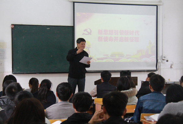 他指出,十九大报告中,习近平总书记用两段话寄语青年一代,是对青年人的殷切期望和谆谆嘱托,为广大青年奋勇投身新时代、接力建功中国梦指明了前进方向、注入了强大动力。他强调,广大青年学生要牢记五个“新”。一是习近平新时代中国特色社会主义思想,它是马克思主义中国化最新理论成果,也是党和人民集体智慧的结晶;二是十八大以来党和国家事业发生了历史性变革,取得的历史性辉煌新成就,解决了许多长期想解决而没有解决的难题,办成了许多过去想办没有办成的大事;三是中国特色社会主义进入新时代,意味着久经磨难的中华民族迎来从站起来、富起来到强起来的伟大飞跃,迎来实现中华民族伟大复兴的光明前景新时代;四是中国社会主要矛盾发生新变化,由人民日益增长的物质文化需要同落后的社会生产之间的矛盾转化为人民日益增长的美好生活需要和不平衡不充分的发展之间的矛盾;五是新时代中国特色社会主义发展新战略,既要全面建成小康社会、实现第一个百年奋斗目标,又要乘势而上开启全面建设社会主义现代化国家新征程,向第二个百年奋斗目标进军。