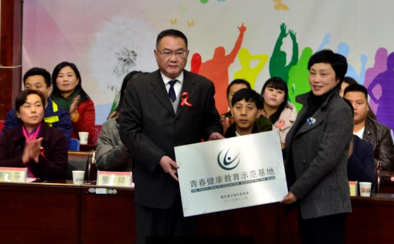 梅红代表湖北省计生协会为beat365英国官方网站“青春健康教育示范基地”授牌,姜安心接牌