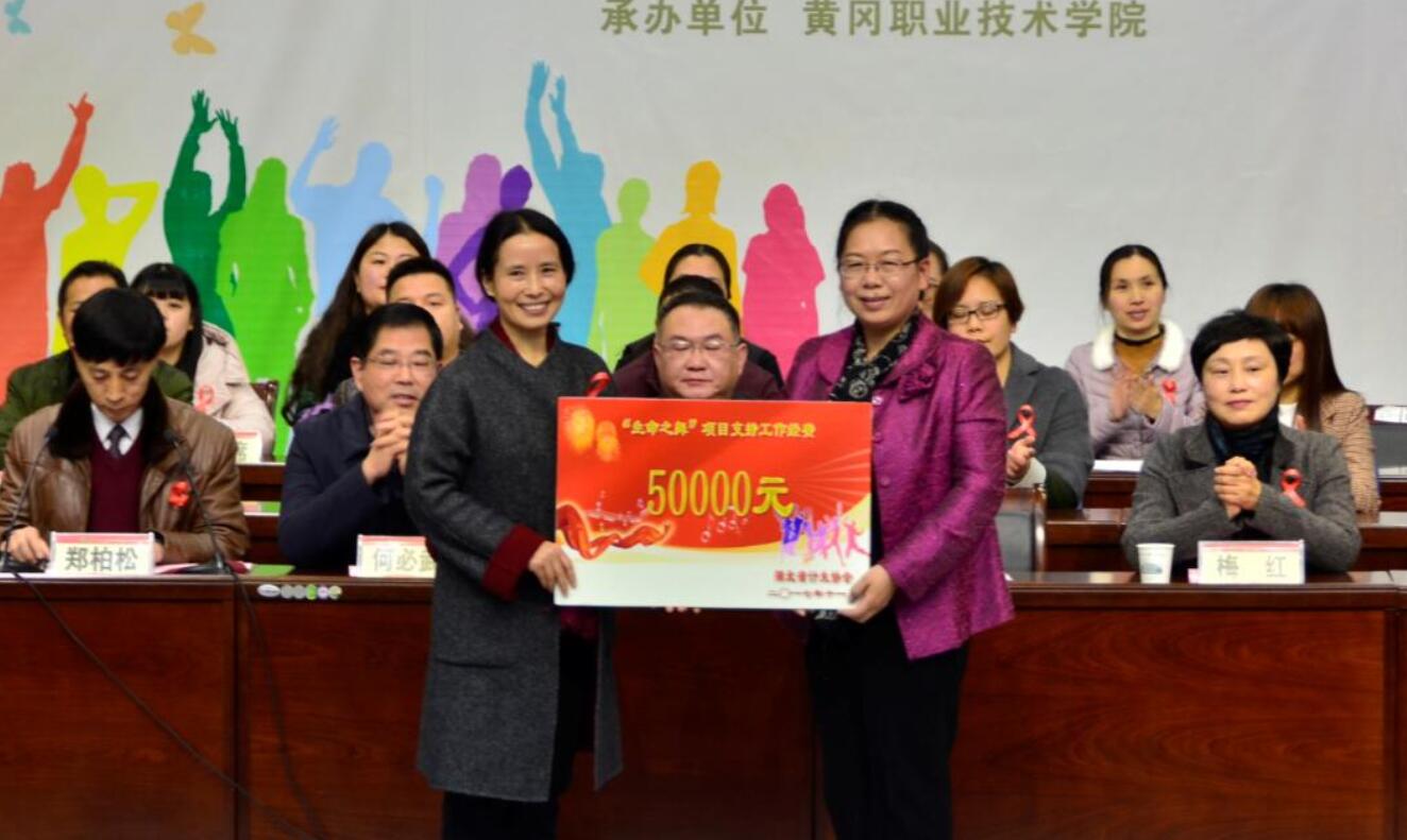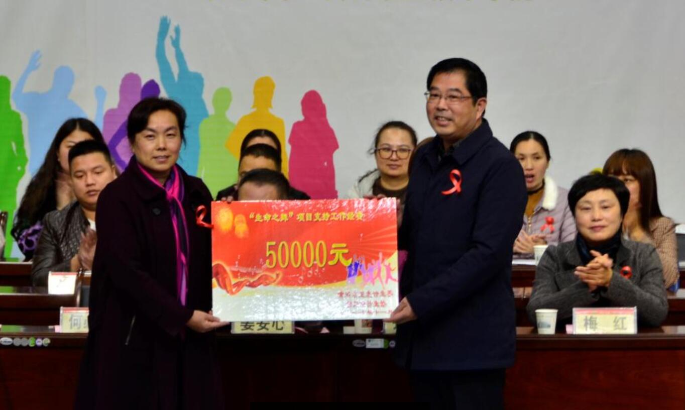 何必武代表黄冈市计生委为beat365英国官方网站“青春健康•生命之舞”项目开展发放工作经费5万元