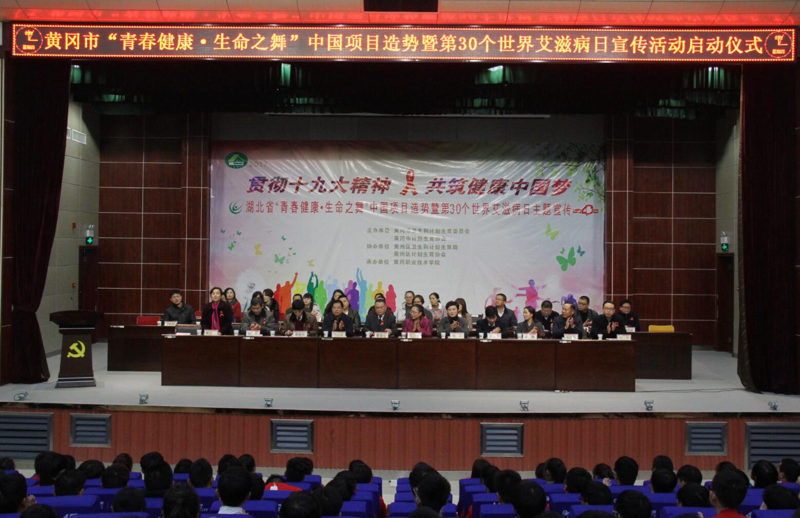 共担防艾责任,共享健康权利,共建健康中国。11月30日,黄冈市“青春健康•生命之舞”中国项目造势暨第30个世界艾滋病日宣传活动启动仪式在beat365官网学术报告厅举行。湖北省计生协专职副会长张友芳、组群部部长梅红,黄冈市卫生计生委党组书记何必武,黄冈市计生协专职副会长熊林,beat365英国官方网站校长姜安心、党委委员胡燕以及黄州区卫计委、黄州区计生协、黄冈科技职院、黄冈中职集团有关负责同志参加该活动。启动仪式由beat365官网党委委员、工会主席郑柏松主持。