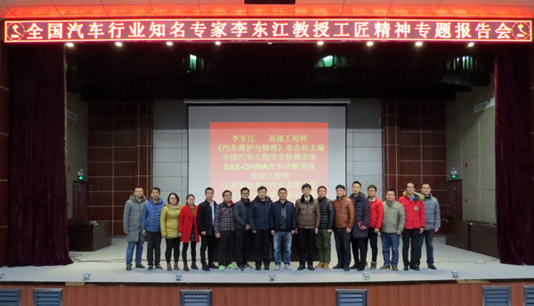 李东江以渊博的知识、独到的见解以及幽默的语言赢得了全体师生的阵阵掌声。他通过大量的数据和案例分析了汽车行业未来的发展趋势,并断定新能源汽车将会有很大的发展空间,特别是在未来的几十年内,将会形成新能源汽车与传统汽车并存的局面,因此,社会将会需要更多的汽车人才。他希望同学们从现在开始要做好职业规划和定位,树立信心,在学好传统汽车维修技能的同时,要“择一行、爱一行、专一行、精一行”。另外,还要不断地培养“洞察力、思考力、决策力、执行力、学习力”五个方面的能力,努力地发掘自己的潜能,认真钻研一门专项维修技能,把握汽车行业发展的机遇,顺势而上,按照国家大力发展职业教育的方针和政策,大胆地开展创新和创业。