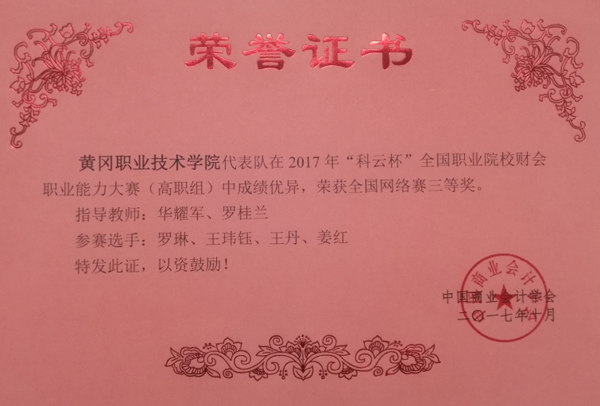 12月14日,湖北省财经类教学指导委员会年会在湖北职院举行,会上颁发了 “科云杯”全国、全省职业院校财会职业能力大赛获奖证书,beat365官网学生获全省团体二等奖、三等奖各1项,全国三等奖2项。