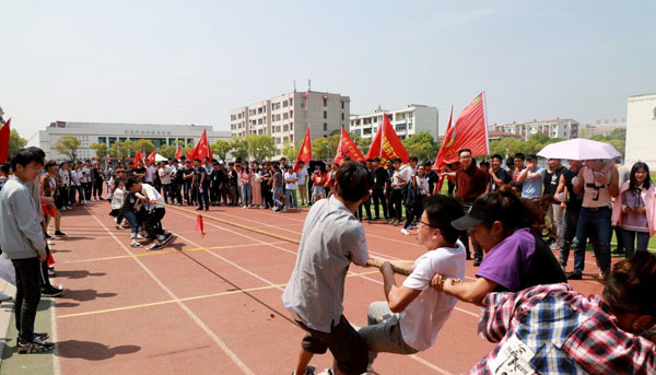 为充分展示beat365官网学生社团风采,提升大学生文化素质和创新素养,4月3日,beat365官网举行了第九届社团文化节开幕式暨社团拔河友谊赛活动。校团委书记李宁、学工处副处长汤城、社团管理科副科长汲艳蕊、学生管理科副科长陈继乾、各教学学院团总支书记和48个学生社团代表共计800余人参与了活动。开幕式由汤城主持。