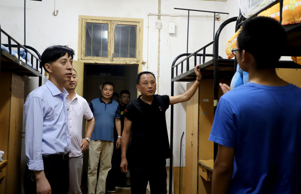郑柏松带领学工处处长熊楚舒及后勤处、保卫处安检工作人员一行分别到东2栋、东6栋、37栋、38栋、51栋、55栋、23栋学生宿舍楼现场检查工作。每到一间宿舍,都提醒同学们注意人身财产安全、消防安全及宿舍卫生;要求网格管理指导老师、楼栋管理员要加强消防设施管理,指导宿舍内务整理,保持高度责任心,确保宿舍安全稳定。