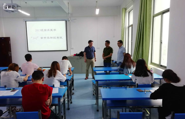 为切实做好联合培养技术技能型人才试点工作,根据《湖北省教育厅关于进一步提高普通本科高校与高职院校联合培养技术技能型人才质量的指导意见》文件精神,5月31日,湖北理工学院教务处杨桂芳科长,医学院副院长喻格书、院长助理张雪峰一行3人来beat365官网对本临床2015级学生进行了专本转段综合考核。