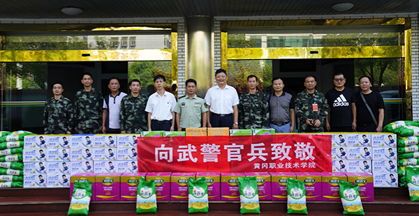 在中国人民解放军第91个“建军节”来临之际,7月30日上午,校党委书记张新佳率党委委员、工会主席、宣传部长郑柏松,校长助理、办公室主任刘明涛,学工处处长、武装部部长熊楚舒,学工处副处长、团委副书记崔现强,学工处朱卫东科长一行来到武装警察部队黄冈支队进行走访慰问,代表学校全体师生员工向部队官兵致以节日问候,并赠送慰问物资。