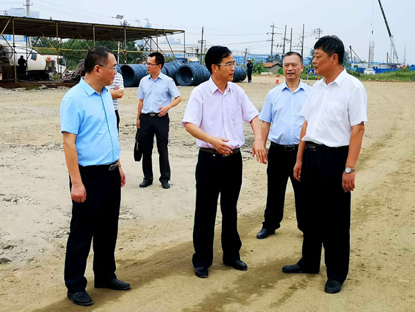 张社教(前中)一行察看黄州大道延伸段建设情况