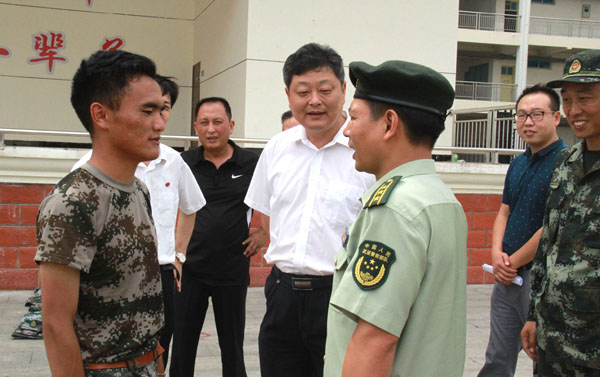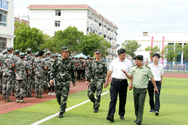 9月18日上午, 武警黄冈支队政委黎本军来beat365官网督查2018级新生军训工作。学校党委书记张新佳,党委委员、工会主席、宣传部长郑柏松陪同检查。