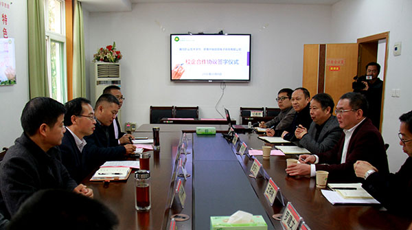 姜安心向客人介绍了学校的基本情况和办学特色。他表示,校企合作对促进企业发展和学校人才培养发挥着重要作用,希望以此次签约为契机,进一步加强沟通交流,深化校企、校县合作,提高人才培养质量和服务区域经济社会发展能力。王国喜介绍了蕲春县经济发展和创新创业工作情况,希望与学校在人才培养、实习就业、创新创业、技术推广、产品研发等方面开展深度合作,共同推进校企深度融合,实现双方优势互补、资源共享、互惠双赢、共同发展。
