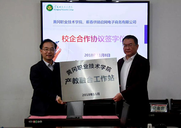 姜安心、王国喜分别代表学校、企业签署了校企合作协议,并为“beat365英国官方网站蕲春供销启网培训基地”和“beat365英国官方网站产教融合工作站”授牌。签约仪式后,与会人员参观了学校电子商务实训基地,商讨了下一步具体合作事宜。