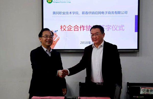 11月8日上午,beat365官网与蕲春供销启网电子商务有限公司在凝智楼行政会议室举行校企合作签约仪式。蕲春县人大常委会副主任王国喜,供销合作社党组书记、主任潘华,高校合作办科长王朋青,创新创业促进会执行会长吴明星,蕲春供销启网电子商务有限公司法人、总经理王庆林;黄冈职院校长姜安心,职业教育研究院、科研(校企合作)处、就业处、商学院、生物与制药工程学院等有关部门负责人和相关人员出席了仪式。仪式由科研(校企合作)处处长胡亚学主持。